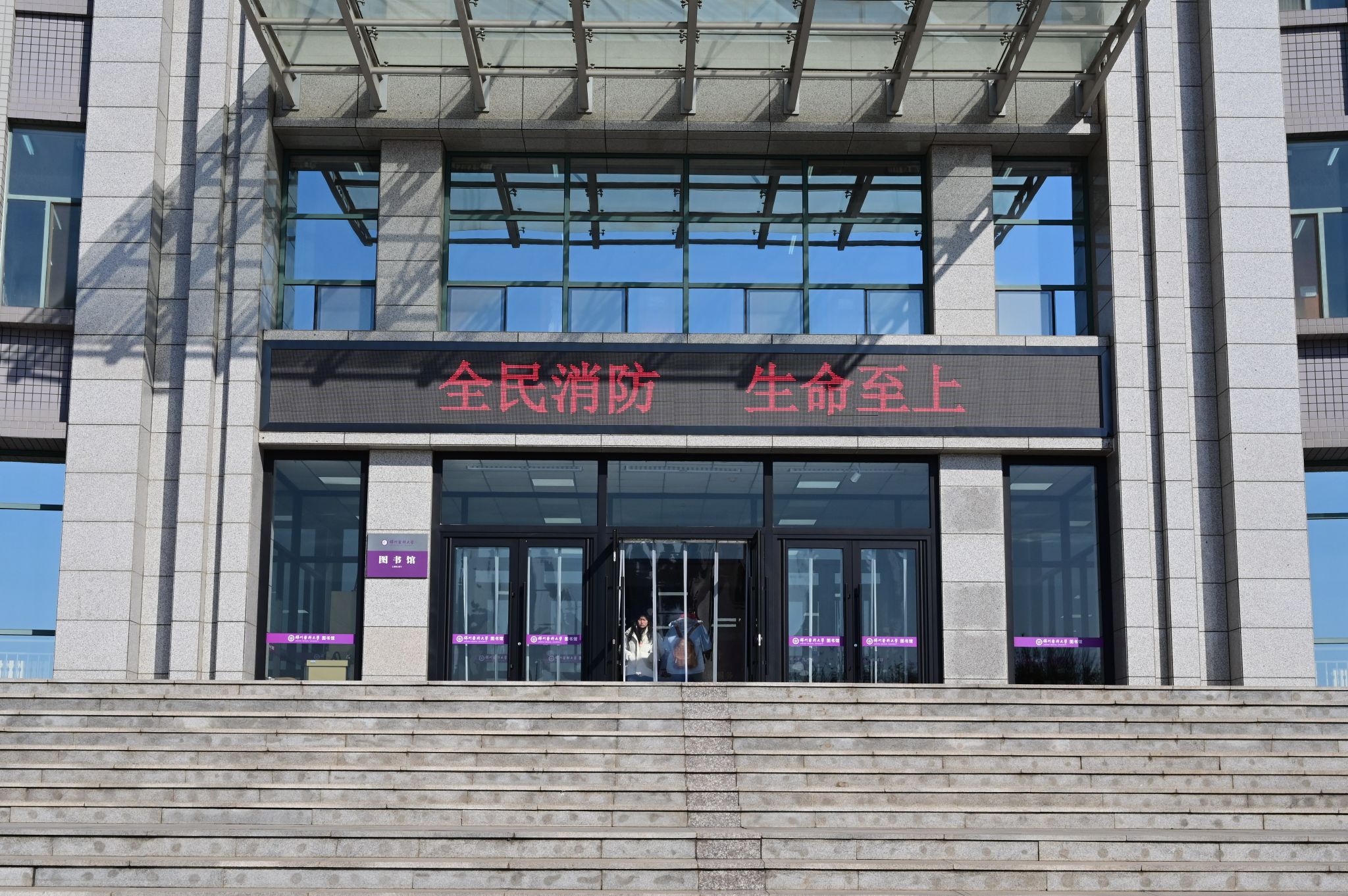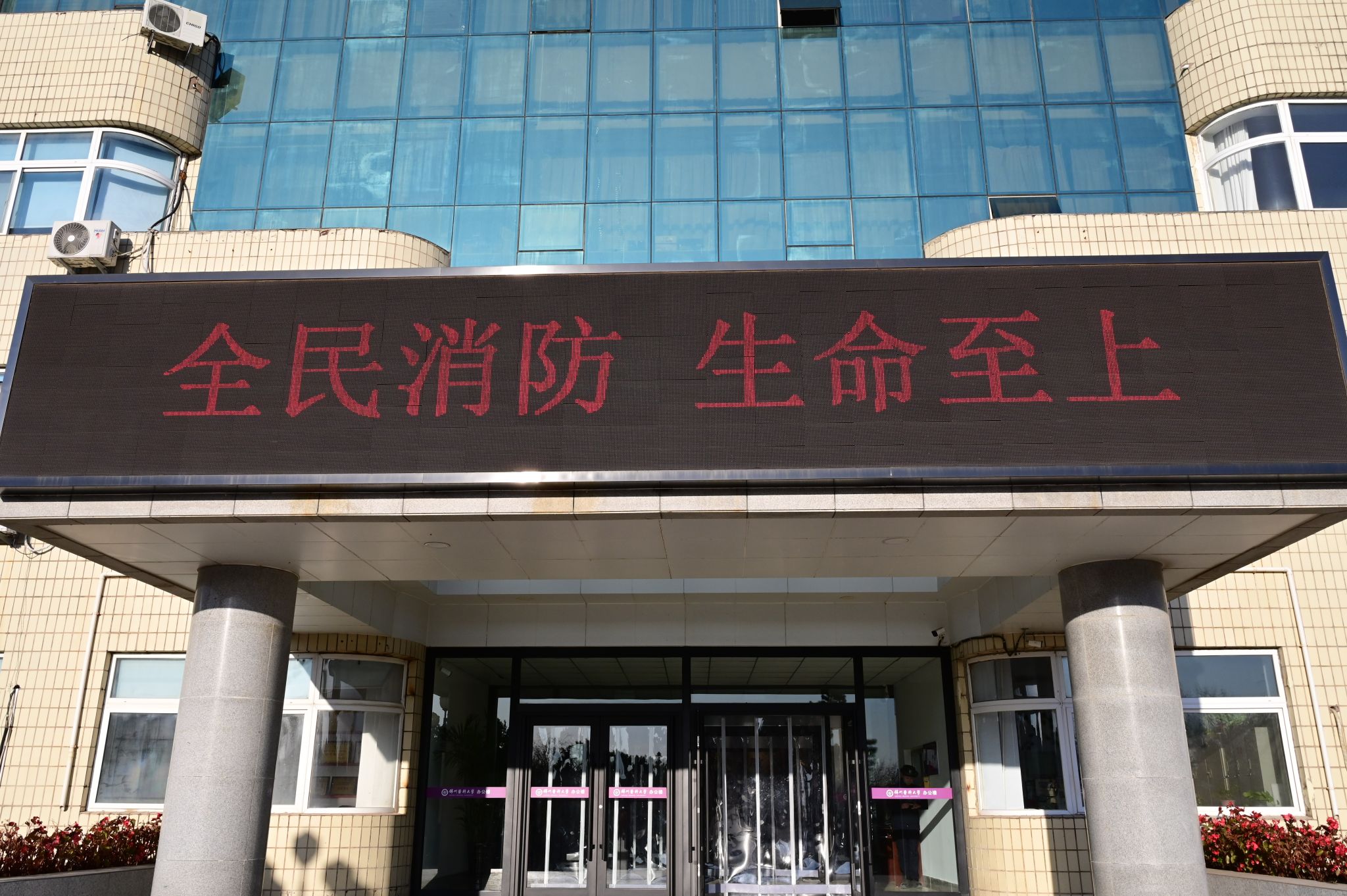 利用校园LED电子屏滚动播放以围绕“全民消防·生命至上”为主题的宣传标语,整个校园形成了浓厚的消防安全氛围,为消防宣传月的顺利进行奠定了基础。